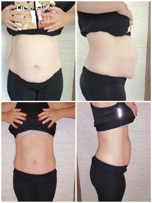 Janette ist eine 31-jährige Mutter von 4 Kindern, die mich vor 5 Monaten kontaktierte, um mit mir zu arbeiten.Sie wusste, dass sie ein Unterleibsproblem mit Rückenschmerzen hatte. Oberhalb des Bauchnabels war ein Abstand von 4,5 und unten war ein Abstand von 3 Fingern zwischen den geraden Bauchmuskeln.Zsanett wollte nicht nur gesund werden, sondern auch abnehmen, also haben wir ihre Ernährung besprochen, die sie dann ganz allein angepasst hat.Wir trafen uns alle zwei Wochen zu individuellen Beratungsgesprächen, bei denen wir das neue Übungsprogramm an ihren Bauch und ihr Fitnessniveau anpassten.Von Monat zu Monat war sie von den Ergebnissen, die sie sah und maß, begeisterter. Sie hat inzwischen 15 Kilo abgenommen und ihre Kleidergröße von 44 auf 38 geändert.Sie hat ihre Rumpfmuskulatur gestärkt und führt nun regelmäßig Rumpfübungen...